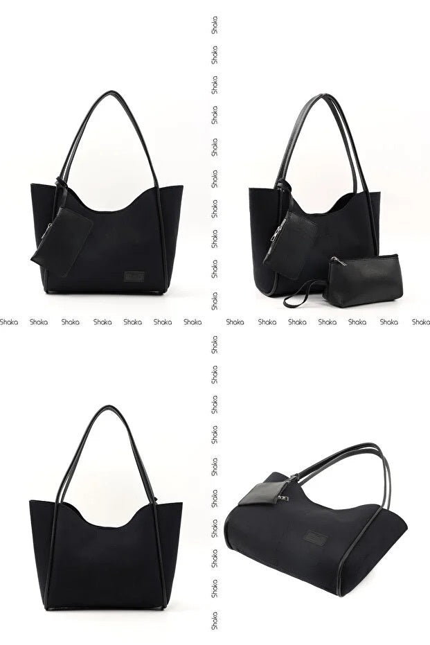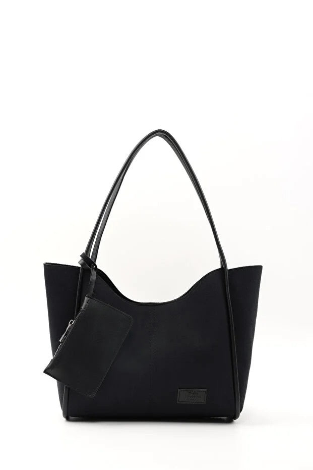 Black Suede SHK108 Women Hand And Shoulder Bag With Wallet And Makeup Bag